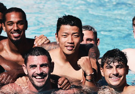뜨거운 이적 사가 주인공 황희찬(28)이 그 열기를 물놀이로 식히고 있다.