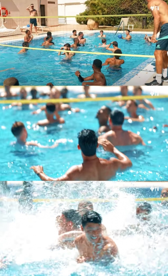 뜨거운 이적 사가 속 주인공 황희찬은 정작 물놀이에 한창이다. 16일 울버햄튼 공식 채널에 공개된 영상에 따르면 황희찬은 동료들과 함께 수중배구를 즐겼다. 동료가 득점에 성공하자 활짝 웃으며 좋아한다. 황희찬이 서브를 넣어 성공하자 동료들이 물장구를 치며 기뻐하는 모습이 담겼다.