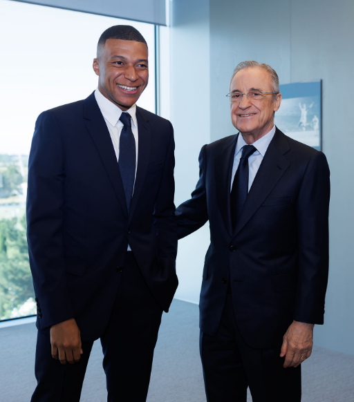 레알 마드리드가 킬리안 음바페(26)의 공식 입단 사진을 공개했다. 음바페는 플로렌티노 페레스 회장과 함께 손을 맞잡고 미소지었다.