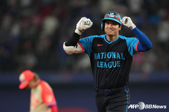 오타니는 17일(한국시간) 미국 텍사스주 알링턴 글로브 라이프 필드에서 열린 2024 미국프로야구 메이저리그(MLB) 올스타전에 내셔널리그 2번, 지명타자로 선발 출전해 스리런 홈런 포함 2타수 1안타 1볼넷 1삼진 3타점 1득점으로 맹활약했다.