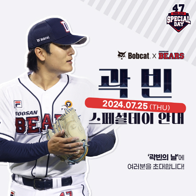 두산 베어스는 "25일 잠실야구장에서 열리는 키움 히어로즈와 정규시즌 맞대결에서 '곽빈 밥캣 스페셜데이' 행사를 진행한다"고 밝혔다.