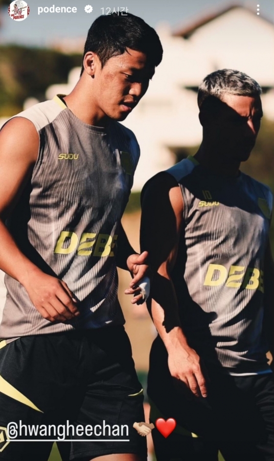 포덴스는 17일(한국시간) 개인 사회관계망서비스(SNS)를 통해 황희찬의 사진과 함께 하트 이모티콘을 남겼다.