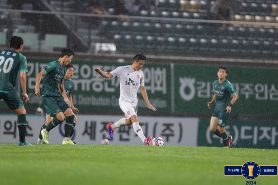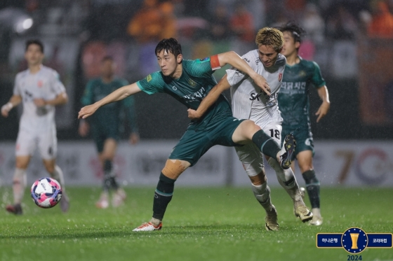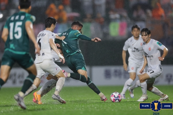 제주는 17일 오후 7시 김포솔터축구장에서 열린 '2024 하나은행 코리아컵' 8강전에서 유리 조나탄의 결승골에 힘입어 김포를 1-0으로 꺾었다. 4강에 오른 제주는 울산 HD와 결승 진출을 다툰다.
