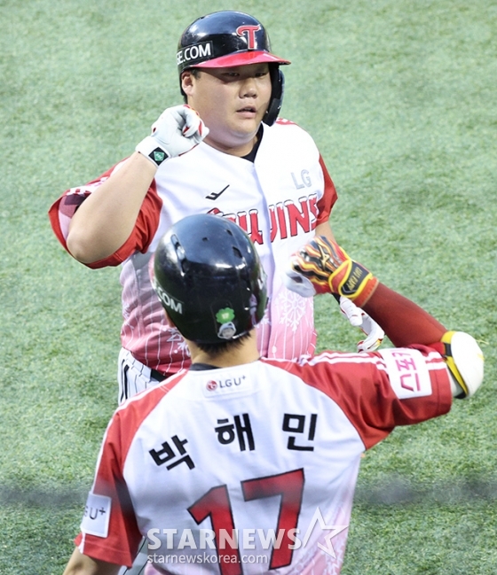 스포츠야구[포토] 돌아온 김범석 '잠시 울컥'발행 : 2024.07.17 ・ 20:06조회수 :잠실=김진경 대기자'2024 신한 SOL 뱅크 KBO리그' LG-SSG전이 17일 서울 잠실야구장에서 열렸다.LG 김범석이 3회말 1사에서 오지환에 이어 백투백 홈런을 날린 후 홈인하고 있다.'2024 썸클 in 잠실' 썸머 크리스마스 이벤트를 준비한 LG는 썸머 크리스마스 이벤트 유니폼을 착용하고 경기에 나섰다.<저작권자 © 스타뉴스, 무단전재 및 재배포 금지>브리핑추천 기사김진경 대기자기자홈좋아요스포츠-야구의 인기 급상승 뉴스스포츠-야구의 최신 뉴스AD