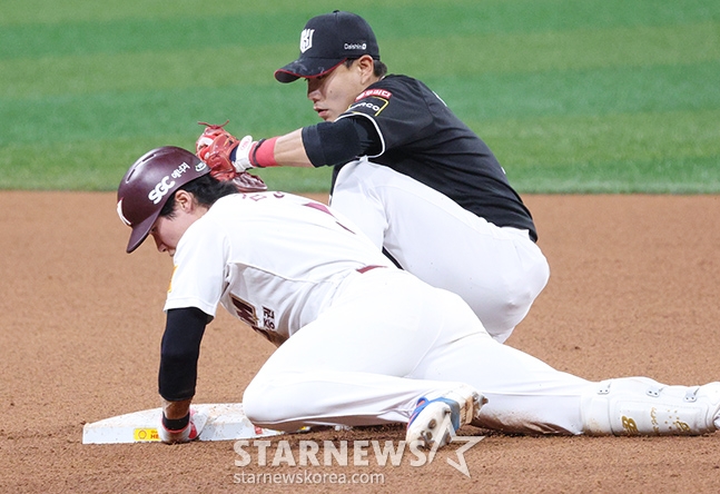 스포츠야구[포토] 김혜성 '이 느낌적인 느낌이란'발행 : 2024.07.18 ・ 20:07고척=김진경 대기자'2024 신한 SOL 뱅크 KBO리그' 키움-KT전이 18일 서울 고척스카이돔에서 열렸다.키움 김혜성이 좌전 안타를 치고 2루까지 질주했으나 kt 2루수 심우준에 태그아웃되고 있다.<저작권자 © 스타뉴스, 무단전재 및 재배포 금지>헤이수스김건희박도현_코치포구KT프로야구추천 기사김진경 대기자기자홈좋아요 스포츠-야구의 인기 급상승 뉴스스포츠-야구의 최신 뉴스