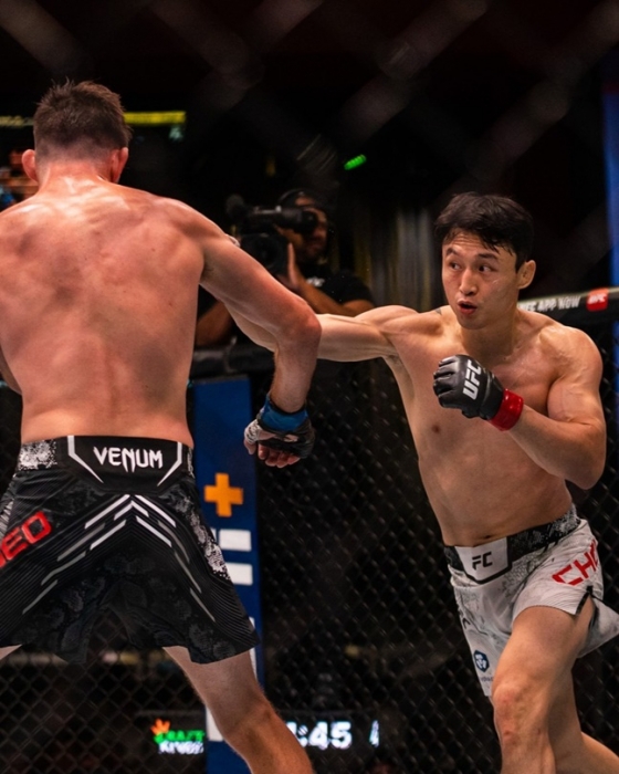 2라운드 시작과 함께 주먹을 꽂아 넣은 최두호는 허를 찌르는 잽과 바디 공격으로 점수를 땄다. 링 밖에서 정찬성은 끊임없이 최두호를 향해 조언을 보냈다.