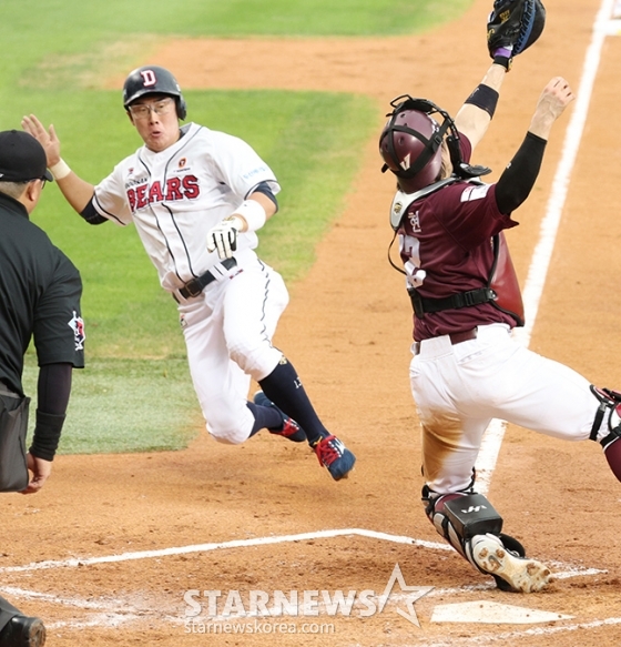스포츠야구[포토] 허경민 '일단 몸을 날리자'발행 : 2024.07.23 ・ 19:32잠실=김진경 대기자'2024 신한 SOL Bank KBO' 두산-키움전이 23일 서울 잠실야구장에서 열렸다.두산 3회말 2사 2루에서 2루주자 허경민이 양의지의 적시터 때 홈으로 뛰어 세이프되고 있다. 키음 포수는 김재현.아웃판정이 먼저 있었으나 비디오 판독 끝에 세이프로 정정됐다. 이에 홍원기 키움 감독은 항의를 하다 퇴장 명령을 받았다.<저작권자 © 스타뉴스, 무단전재 및 재배포 금지>최준호헤이수스프로야구두산승리요정키움추천 기사김진경 대기자기자홈좋아요 스포츠-야구의 인기 급상승 뉴스스포츠-야구의 최신 뉴스