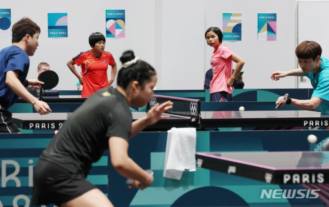 파리로 넘어간 북한 대표팀은 대회 개막(26일)을 앞두고 연습에 매진했다. 뉴시스 보도에 따르면 현지시간으로 22일에는 탁구 대표팀 편송경과 김금영, 리정식이 한국 대표팀과 같은 공간에서 연습을 진행했다고 한다.