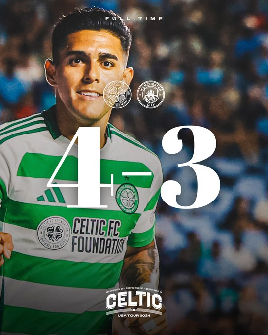 셀틱은 24일(한국시간) 미국 노스 캐롤라이나의 케난 메모리얼 스타디움에서 열린 맨시티와 프리시즌 친선 경기에서 4-3으로 이겼다.