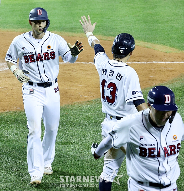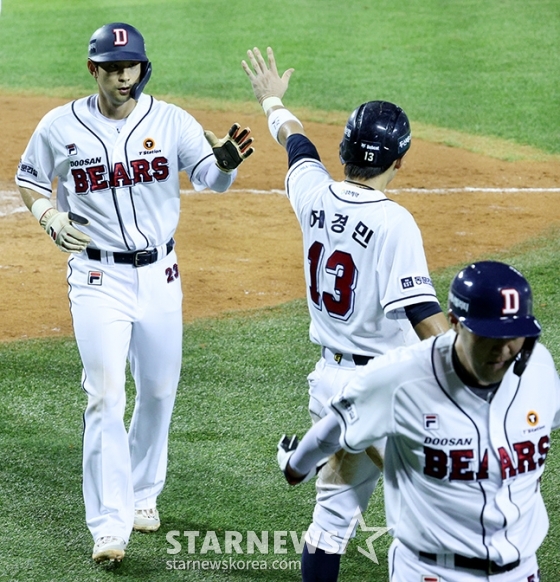 스포츠야구[포토] 양석환-허경민-강승호 '기차놀이 홈인'발행 : 2024.07.24 ・ 21:24잠실=김진경 대기자'2024 신한 SOL Bank KBO' 두산-키움전이 24일 서울 잠실야구장에서 열렸다.두산 7회말 2사 만루에서 박준영의 주자일소 3타점 중월 2루타 때 홈을 밟은 양석환, 허경민, 강승호가 기쁨을 나누고 있다.<저작권자 © 스타뉴스, 무단전재 및 재배포 금지>프로야구두산승리요정키움시구시타추천 기사김진경 대기자기자홈좋아요 스포츠-야구의 인기 급상승 뉴스스포츠-야구의 최신 뉴스