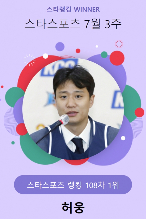 허웅은 스타뉴스가 지난 18일 오후 3시 1분부터 25일 오후 3시까지 일주일 동안 진행한 스타랭킹 스타스포츠 108차(7월 3주) 투표에서 1만 293표를 얻어 1위를 지켰다. 유일하게 1만 표를 넘기면서 2022년 6월 30일 스타랭킹에 스포츠 부문이 추가된 이래 단 한 번도 정상을 내주지 않았다.