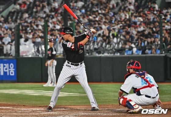 연장 승부 끝에 야수 자원을 모두 소비한 LG는 정우영을 그대로 타석에 내보냈다. 리드를 잡은 상황이어서 염경엽(56) LG 감독도 환한 미소를 지으며 정우영의 타석을 지켜봤다. 그는 롯데 투수 최이준의 초구 가운데 패스트볼을 지켜봤다.