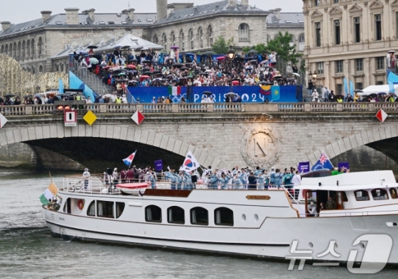 이날 오전 2시 30분(한국시각)부터 파리 센강 일대에서 진행된 파리 올림픽 개회식에서 한국 선수단은 프랑스 표기법(Coree)에 따라 48번째 순서로 등장했다. 우상혁(육상)과 김서영(수영)이 기수로 나섰고 콩고민주공화국, 코스타리카, 코트디부아르 선수단과 같은 배를 타고 입장했는데 여기서 문제가 생겼다.