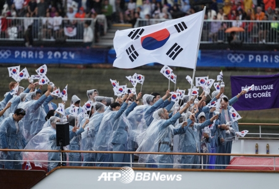 한편 한국 선수단은 프랑스 표기법 알파벳(프랑스어 Coree) 순서에 따라 48번째로 등장했다. 콩고민주공화국, 쿡제도, 코스타리카, 코트디부아르 선수단과 함께였다. 기수인 우상혁(육상)과 김서영(수영)을 비롯해 선수단과 관계자 50여명이 배에 탑승했다.