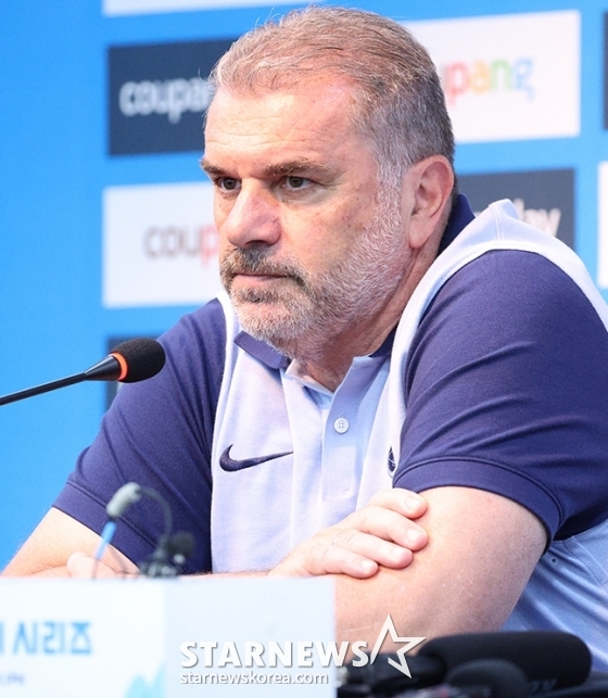 포스테코글루 토트넘 감독과 주장 손흥민(32) 서울월드컵경기장에서 열린 쿠팡플레이 시리즈 1경기 팀 K리그전 사전 기자회견에 나섰다.
