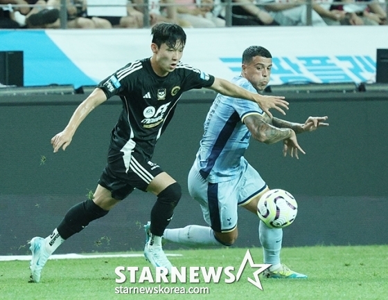 경기 최고 화두는 손흥민과 양민혁의 대결이었다. 손흥민은 토트넘 주장 완장을 찬 프리미어리그 대표급 공격수다. 올해 강원에서 준프로 신분으로 데뷔한 양민혁은 불과 며칠 전 토트넘행을 확정 지은 초신성이다.