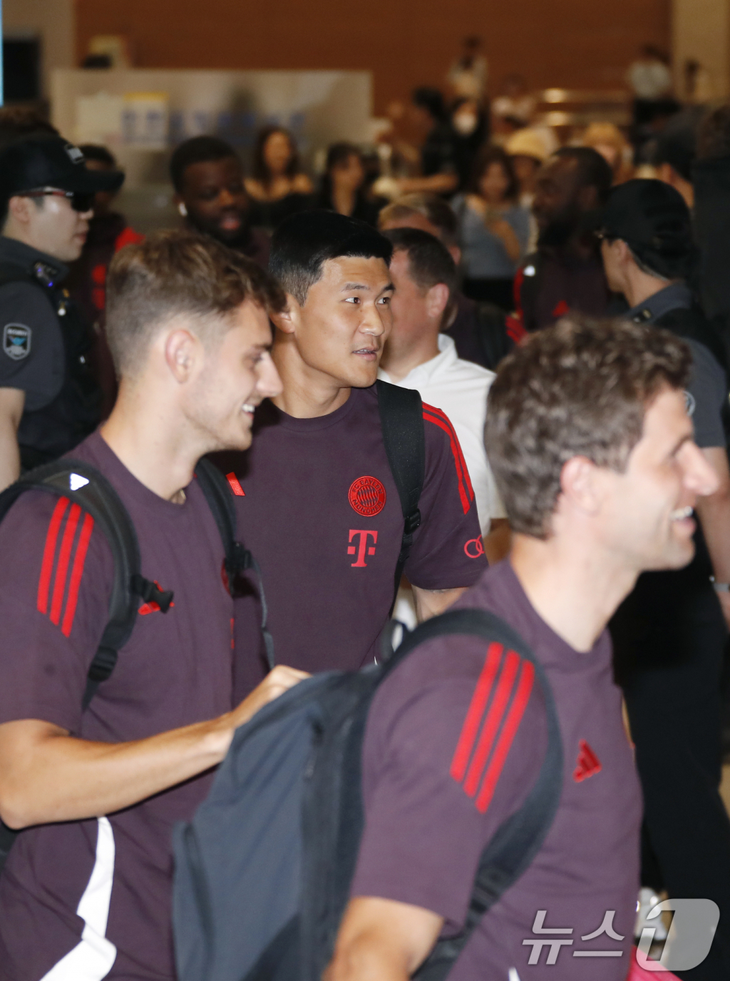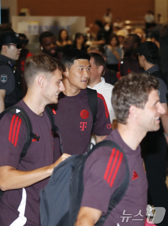 이날 공항에는 김민재와 뮌헨 선수들을 보기 위해 많은 팬이 몰렸다. 전날 먼저 한국에 도착한 김민재는 뮌헨 트레이닝복과 배낭을 메고 입국장에서 동료들을 기다렸다.