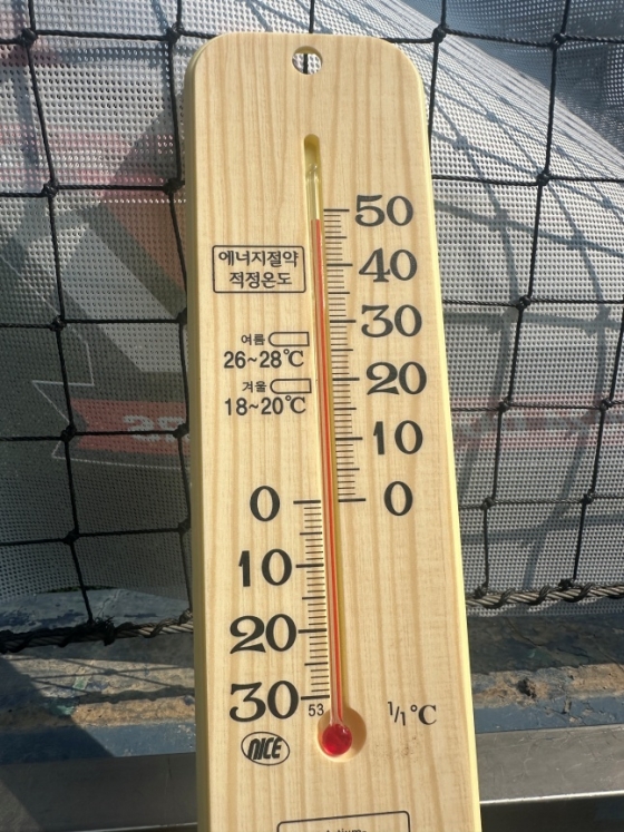 천연잔디가 깔린 잠실야구장은 울산보단 사정이 낫지만, 선수들이 힘들어하는 더운 날씨인 건 변함이 없었다. 이날 오후 3시 30분 기준 잠실야구장이 있는 서울 송파구 지역에는 일찌감치 폭염 경보가 내렸고, 기온도 35.9도에 달한다. 두산 선수들이 쓰는 1루 더그아웃에 배치한 온도계는 지열이 더해져 48도를 찍었다. 그 탓에 선수들도 야외 훈련을 최소한으로 하고 일찍 실내로 향했다.