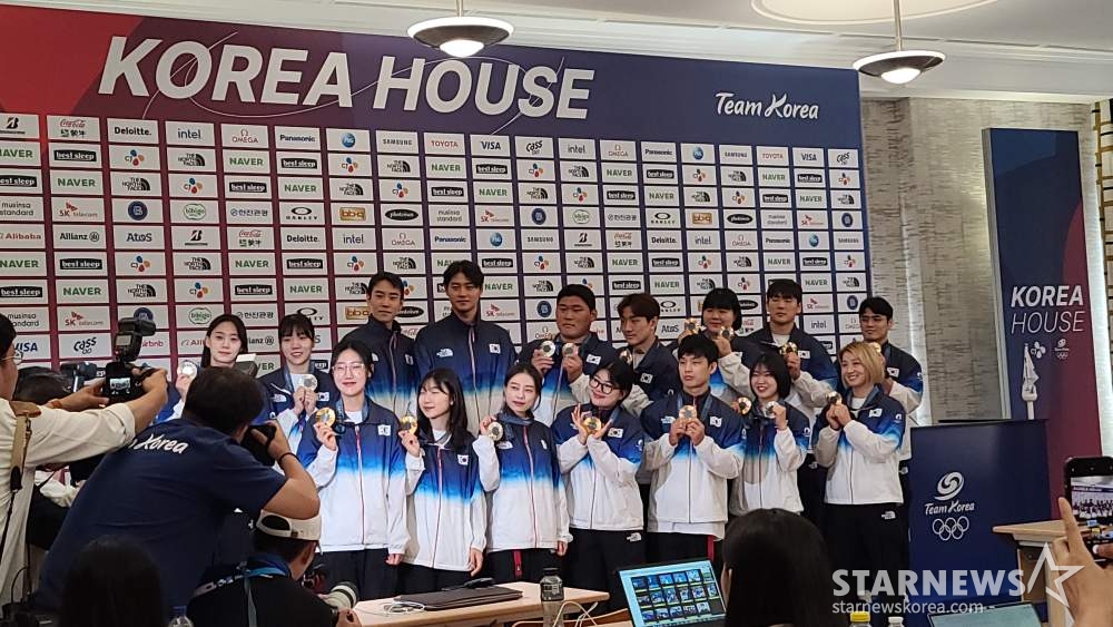 또 가장 축하해주고 싶은 선수에 대한 질문에는 "허미미(유도) 선수를 가장 눈여겨보고 있었다. 영상으로 많이 봤다. 많이 축하드리고 싶다"면서 함께 자리한 허미미를 쳐다본 뒤 "축하드립니다"라고 밝게 소리치며 꾸뻑 인사까지 했다. 다시 한번 장내는 웃음바다가 됐다.
