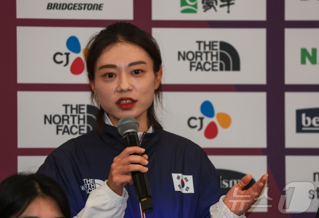 김예지는 4일(한국 시각) 프랑스 파리 앵발리드 인근에 있는 코리아하우스에서 열린 한국의 2024 파리 하계올림픽 메달리스트 공식기자회견에 참석해 취재진과 인터뷰에 임했다.