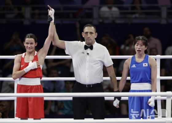 임애지는 4일(현지시간) 프랑스 파리 노스 파리 아레나에서 열린 2024 파리 올림픽 복싱 여자 54㎏급 4강전에서 해티스 아크바스(튀르키예)에게 2-3으로 판정패했다.