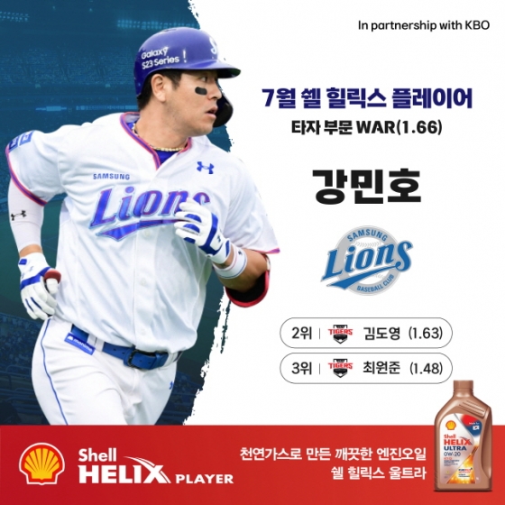 7월 타율은 0.408(3위)에 달했고 홈런을 무려 11개나 몰아치며 이 부문 1위에 올랐다. 7월의 마지막 날까지 KIA 타이거즈 김도영과 치열한 경합을 벌였다. 김도영 또한 7월 타율 0.407, 7홈런 21타점으로 맹타를 휘둘렀지만 대체 선수 대비 승리 기여도(WAR)를 기반으로 수상자를 선정하는 쉘힐릭스플레이어 수상자는 7월 WAR 1.66를 기록한 강민호가 0.03 차이로 선정됐다.