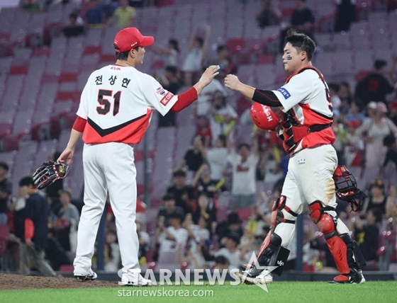 스포츠야구[포토] 전상현 '깔끔한 승리'발행 : 2024.08.06 ・ 22:29광주=김진경 대기자'2024 신한 SOL 뱅크 KBO리그' KIA-KT전이 6일 광주기아챔피언스필드에서 열렸다.9회 등판한 KIA 전상현이 경기를 매조지한 후 포수와 기쁨을 나누고 있다.<저작권자 © 스타뉴스, 무단전재 및 재배포 금지>김도영30_30최연소기록KIA프로야구도니살추천 기사김진경 대기자기자홈좋아요 스포츠-야구의 인기 급상승 뉴스스포츠-야구의 최신 뉴스
