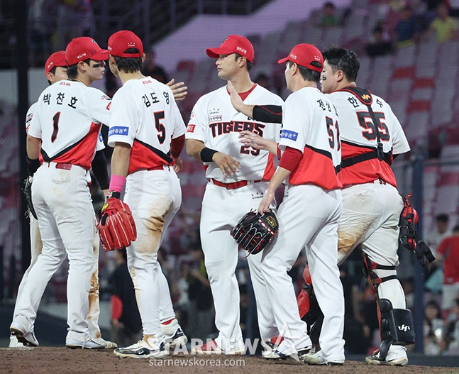 스포츠야구[포토] 박찬호-김도영 '무적 호랑이'발행 : 2024.08.06 ・ 22:32수정 : 2024.08.06 ・ 22:36광주=김진경 대기자광고삭제'2024 신한 SOL 뱅크 KBO리그' KIA-KT전이 6일 광주기아챔피언스필드에서 열렸다.KT에 승리한 KIA 선수들이 경기 종료 후 마운드에 모여 기쁨을 나누고 있다.<저작권자 © 스타뉴스, 무단전재 및 재배포 금지>김도영30_30최연소기록KIA프로야구도니살추천 기사김진경 대기자기자홈좋아요 스포츠-야구의 인기 급상승 뉴스스포츠-야구의 최신 뉴스
