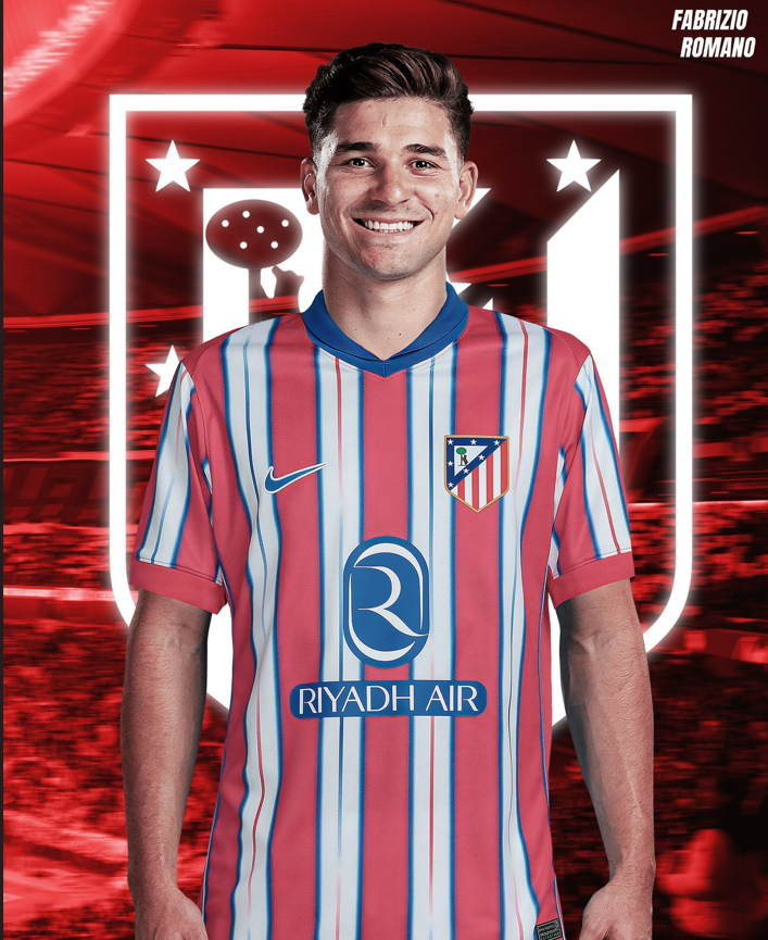 유럽축구전문가 파브리시오 로마노는 7일(한국시간) 개인 사회관계망서비스(SNS)를 통해 "맨체스터 시티 공격수 훌리안 알바레스(24)는 아틀레티코로 향한다. 이적료 7500만 유로에 추가 옵션 2000만 유로(합계 9500만 유로·약 1428억 원)다"며 "훌리안은 아틀레티코의 5년 계약을 수락했다. 에이전트와 이야기도 마쳤다"고 밝혔다.