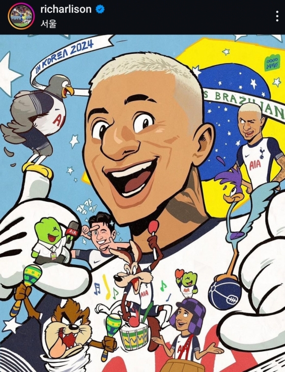 심지어 히샬리송은 투어가 끝난 뒤 개인 사회관계망서비스(SNS)에 '사랑해요 한국'이라는 문구와 함께 게시글을 올렸다. 하트와 대한민국 국기까지 더했다. 한국 투어 당시 직접 만났던 세징야(대구FC)는 댓글에 애정을 표현하기도 했다.