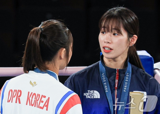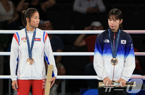 임애지와 방철미는 8일(현지시간) 프랑스 파리의 롤랑가로스에서 열린 2024 파리올림픽 여자 복싱 54kg급 시상식에서 만났다. 준결승전에서 패배한 두 선수는 동메달을 목에 걸었다. 이번 파리올림픽 복싱에서는 4강 탈락 시 메달 결정전 없이 바로 동메달이 주어졌다.