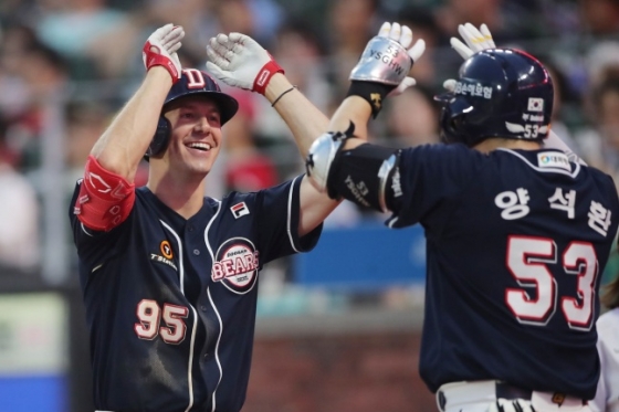 7회 초에는 제러드가 또 한 번 SSG를 울렸다. 정수빈, 강승호가 연속 안타로 만든 무사 2, 3루에서 제러드는 이로운의 7구째 포크를 좌익수 방면으로 멀리 보내 3루 주자 정수빈을 홈으로 불러들였다.