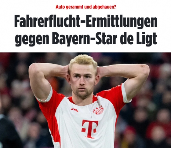 독일 '빌트'는 10일(한국시간) "바이에른 뮌헨 스타 데 리흐트가 뺑소니 사고 혐의로 경찰 조사를 받고 있다"고 보도했다.