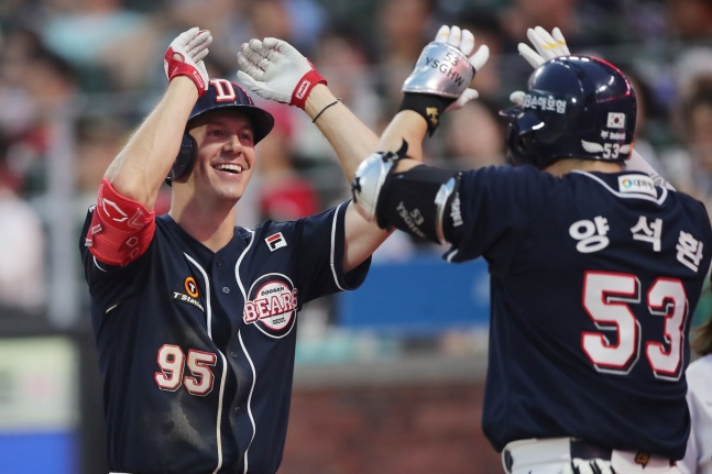 이틀 연속 선발 투수가 제 몫을 하지 못한 가운데 타선이 힘을 냈다. 리드오프 정수빈이 3타수 2안타 3볼넷 2타점 3도루 2득점으로 공격의 활로를 뚫고, 제러드는 3경기 연속 홈런 포함 3타수 2안타(1홈런) 3타점으로 해결사 역할을 했다.