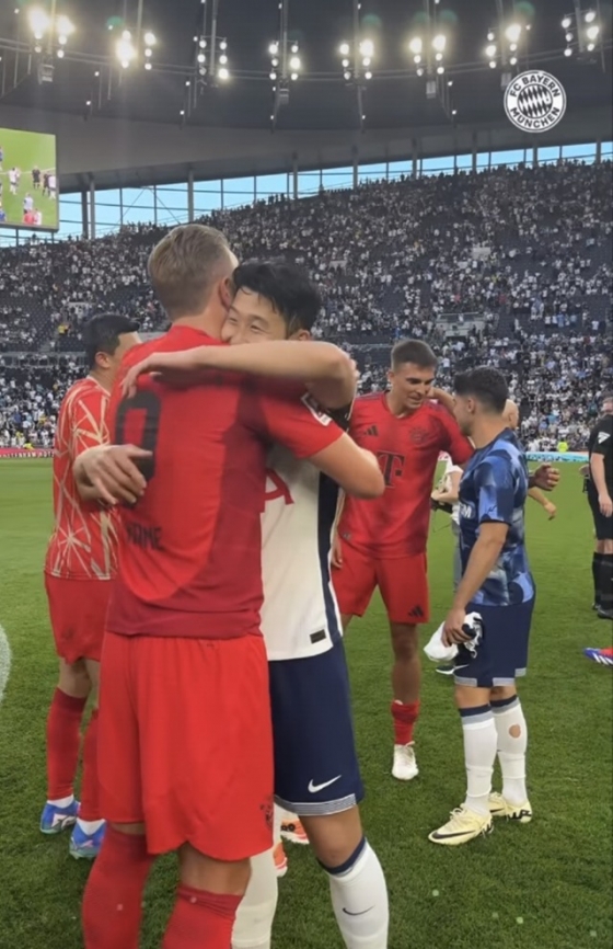 손흥민은 후반 37분 윌 랭크셔와 교체아웃돼 경기를 마쳤다. 마침 2분 전 전 동료이자 뮌헨 공격수 케인이 교체로 들어간 상황이라 짧은 인사도 이뤄졌다. 손흥민과 케인은 뜨거운 포옹을 나누며 반가운 마음을 드러냈다. 김민재는 후반 43분 통증을 호소해 교체돼 나왔다.