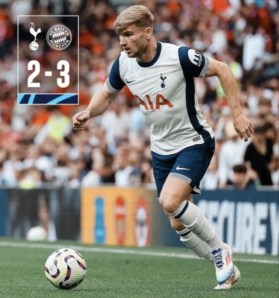 뱅상 콤파니 감독이 이끄는 뮌헨은 11일(한국시간) 영국 런던에 위치한 토트넘 홋스퍼 스타디움에서 열린 프리시즌 친선경기 토트넘과 맞대결에서 3-2로 이겼다. 이로써 뮌헨은 지난 3일 서울월드컵경기장에서 열린 쿠팡플레이 시리즈 2경기 토트넘전 2-1 승리에 이어 또 한 번 미소를 지었다.