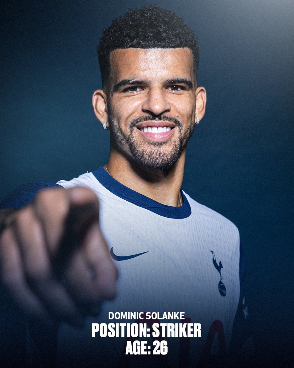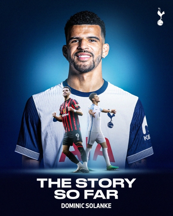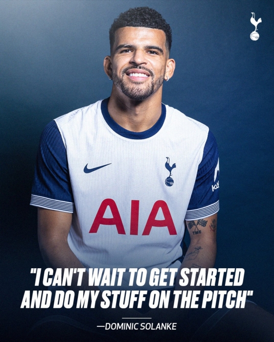 솔란케는 2023~2024시즌 프리미어리그에서 19골을 몰아친 잉글랜드 특급 스트라이커다. 지난해 여름 케인을 뮌헨으로 보낸 토트넘은 대체자격인 중앙 공격수를 1년 만에 영입했다. 토트넘에 합류한 솔란케는 "정말 많은 의미가 있다. 토트넘 같은 구단에 오는 건 내가 원하는 전부였다"며 "야망이 나와 비슷한 빅클럽이다. 엄청난 선수단과 만나 기쁘다"고 알렸다.