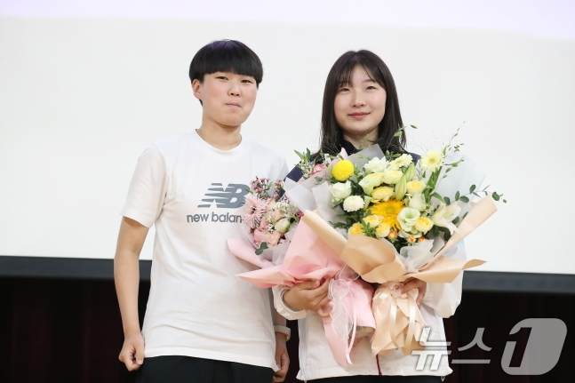 이상욱 대구체고 교장은 환영사에서 "효진이가 지난해 고관절 무릎 통증을 겪었지만 훈련을 게을리하지 않고 이겨내 오늘날과 같은 영광을 이뤄냈다"며 "퇴임 전 너무나 큰 선물을 해줘 고맙고 다시 한 번 진심으로 축하한다"고 격려했다.