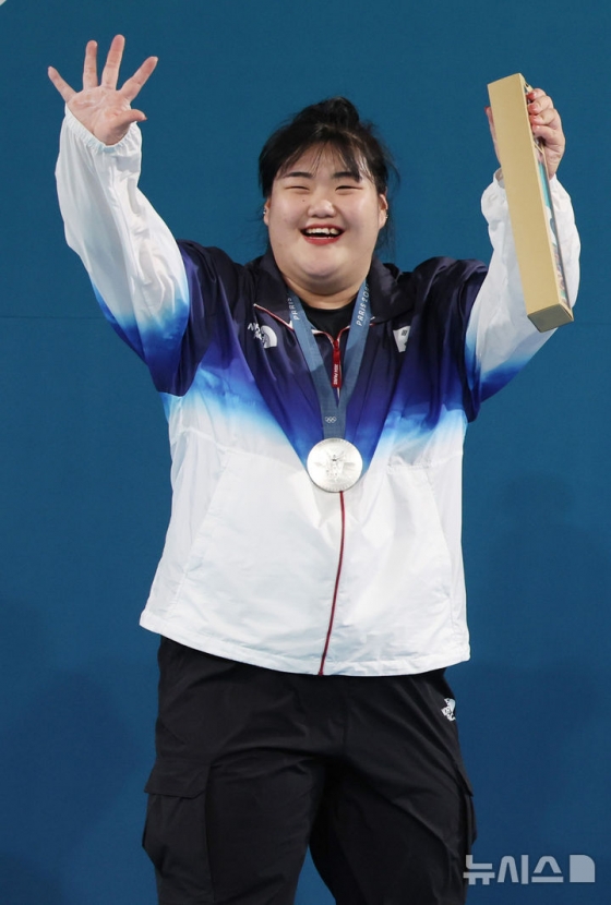 세계 랭킹 2위 박혜정은 11일(한국시간) 프랑스 파리의 사우스 파리 아레나 6에서 열린 '2024 파리 올림픽' 역도 여자 81㎏ 이상급에서 인상 131㎏, 용상 168㎏으로 합계 299㎏을 들어 은메달을 목에 걸었다.