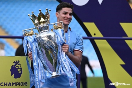 역대급 이적이다. 유럽 축구 유력 소식통 파브리시오 로마노는 지난 7일 개인 사회관계망서비스(SNS)에 "맨시티 공격수 알바레스는 아틀레티코로 향한다. 이적료 7500만 유로에 추가 옵션 2000만 유로(합계 9500만 유로·약 1400억 원)다"고 밝힌 바 있다.