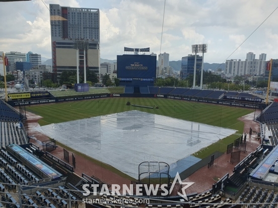외야 워닝트랙과 내야 파울 지역에는 순식간에 물웅덩이가 생겼다. 비에 대한 대비가 되지 않았던 탓에 방수포를 덮는 타이밍도 늦어졌다. NC 관계자들이 급히 나와 대형 방수포를 깔면서 최악의 상황은 막을 수 있었다.