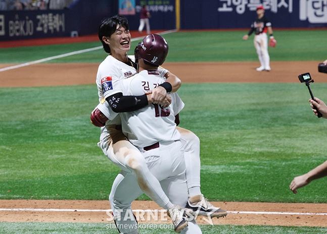 스포츠야구[포토] 송성문 '미라클 대역전'발행 : 2024.08.14 ・ 22:01수정 : 2024.08.14 ・ 23:11고척=김진경 대기자광고삭제'2024 신한 SOL 뱅크 KBO리그' 키움-KIA전이 14일 서울 고척스카이돔에서 열렸다.키움 최주환이 9회말 끝내기 역전 솔로포를 날리자 송성문과 김건희가 포옹을 하며 기뻐하고 있다.<저작권자 © 스타뉴스, 무단전재 및 재배포 금지>김도영30_30고척돔박용택고영우키움추천 기사김진경 대기자기자홈좋아요 스포츠-야구의 인기 급상승 뉴스스포츠-야구의 최신 뉴스