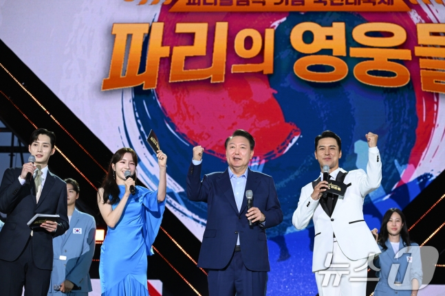 뉴스1과 뉴시스 보도에 따르면 윤 대통령은 16일 오후 서울 여의도공원에서 열린 파리올림픽 기념 국민대축제 행사에 참석해 "더운 여름날 우리 국민들에게 아주 시원한 선물을 주게 돼서 정말 선수들에게 고맙게 생각한다"고 말했다.