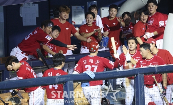 스포츠야구[포토] 오태곤 '역전인데 왜 울어요 민식이형'발행 : 2024.08.20 ・ 21:22조회수 :잠실=김진경 대기자'2024 신한 SOL 뱅크 KBO리그' LG-SSG전이 20일 서울 잠실야구장에서 열렸다.SSG 오태곤이 8회초 1사 3루에서 역전 1타점 희생 플라이를 날린 후 더그아웃에서 동료들의 환영을 받고 있다.<저작권자 © 스타뉴스, 무단전재 및 재배포 금지>브리핑추천 기사김진경 대기자기자홈좋아요스포츠-야구의 인기 급상승 뉴스스포츠-야구의 최신 뉴스