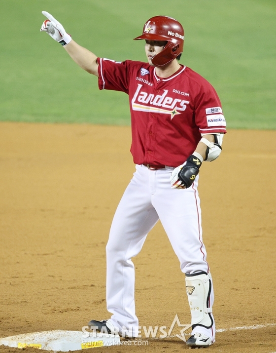 스포츠야구[포토] 김성현 '이게 쐐기 타점이길...'발행 : 2024.08.21 ・ 20:16잠실=김진경 대기자'2024 신한 SOL 뱅크 KBO리그' LG-SSG전이 21일 서울 잠실야구장에서 열렸다.SSG 김성현이 7회초 2사 2루에서 1타점 적시타를 날리고 출루한 후 세리머니를 선보이고 있다.<저작권자 © 스타뉴스, 무단전재 및 재배포 금지>브리핑요약 없이도 가볍게 읽으실 수 있는 짧은 뉴스입니다.추천 기사김진경 대기자기자홈좋아요스포츠-야구의 인기 급상승 뉴스스포츠-야구의 최신 뉴스AD
