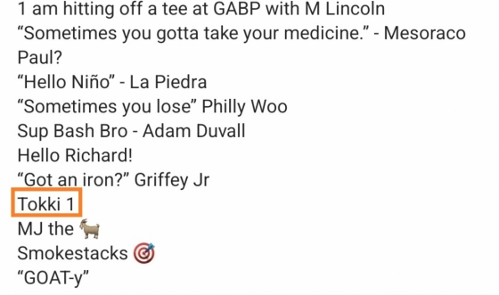 보토도 이때를 잊지 못한 듯했다. 소감문에 고마웠던 동료들의 이름을 나열했는데 그중에는 'Tokki 1'이라는 닉네임으로 추신수가 존재했다. 2013년 당시 추신수는 'Tokki 1', 보토는 'Tokki 2'로 불렸다. 보토가 추신수에게 "나도 너만큼 잘하고 싶다. 넌 마치 잡히지 않는 토끼 같다"는 말을 하자, 추신수가 토끼의 한국말과 스펠링을 알려준 것에서 유래됐다.