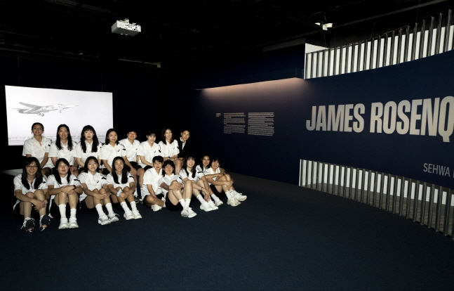 흥국생명배구단은 지난 23일 오후 서울 종로구 흥국생명빌딩 3층 세화미술관에서 열리고 있는 제임스 로젠퀴스트 회고전을 관람했다. 제임스 로젠퀴스트는 앤디 워홀, 로이 리히텐슈타인 등과 미국 팝아트의 부흥을 이끈 대표 작가다.