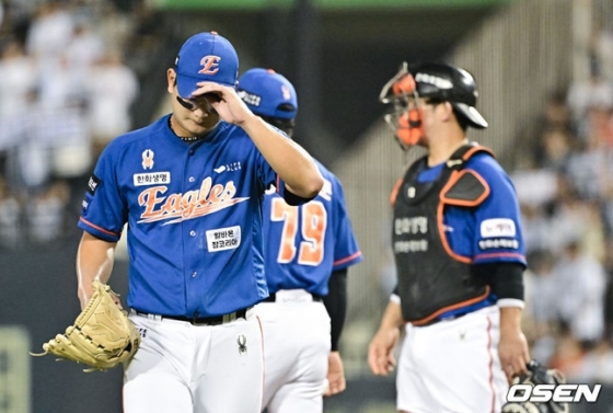포수 최재훈이 마운드에 올라 김서현을 진정시켰다. 한화 벤치는 최근 가장 위력적인 공을 뿌리고 있던 김서현에게 이닝을 마칠 수 있는 임무를 맡겼다. 다소 안정을 찾은 듯 공격적인 승부를 펼쳤고 양석환을 3루수 파울 플라이로 돌려세웠지만 거기까지였다.