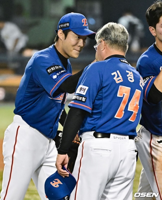 승리 순간 가장 먼저 떠오른 것도 자신을 믿어주고 기회를 준 김경문 감독과 양상문 투수 코치였다. 그는 "감독님과 코치님께서 이렇게 올려주셨고 그에 대한 보답을 해야 한다고 생각햇다. 자신감 있게 저를 기용해 주신 것도 너무 감사드리고 저번에 류현진 선수 승리를 한 번 날렸기 때문에 믿음을 드리고 싶었다"며 "'저 해냈습니다', '감독님, 코치님 사랑합니다'라고 전하고 싶다"고 고마움을 표현했다.