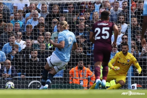 중앙 공격수로 선발 출전한 홀란은 해트트릭을 작렬했다. 전반 16분 만에 멀티골을 터트리더니 후반 43분 이날 세 번째 득점까지 기록했다. 1라운드 첼시전에서도 1골을 올린 홀란은 2경기 4골로 프리미어리그 전체 득점 1위에 올랐다. 손흥민(토트넘 홋스퍼)을 비롯한 경쟁자들은 2골로 공동 2위에 위치했다.
